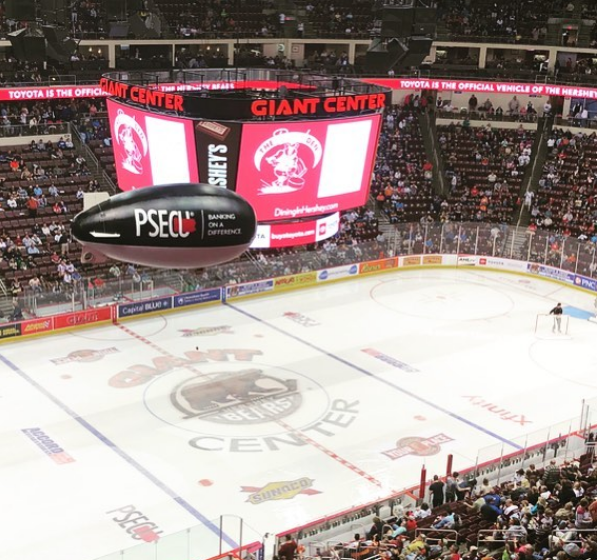 For this sponsored fan engagement experience at Hershey Bears games, a remote controlled blimp floated around the ice rink, dropping money with a special message about how fans could get more money back in their pockets by joining PSECU. One golden ticket was also dropped during the game, which could be redeemed for a prize. This was also paired with a PA announcement and digital video.
